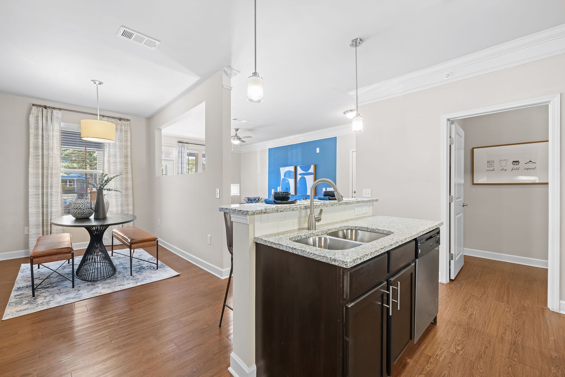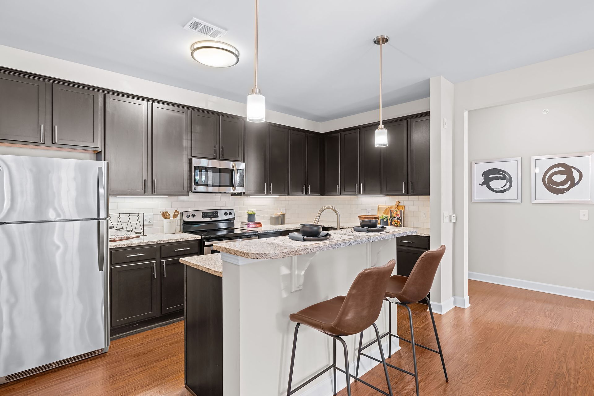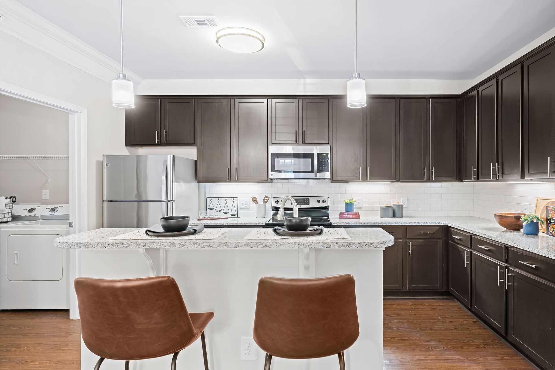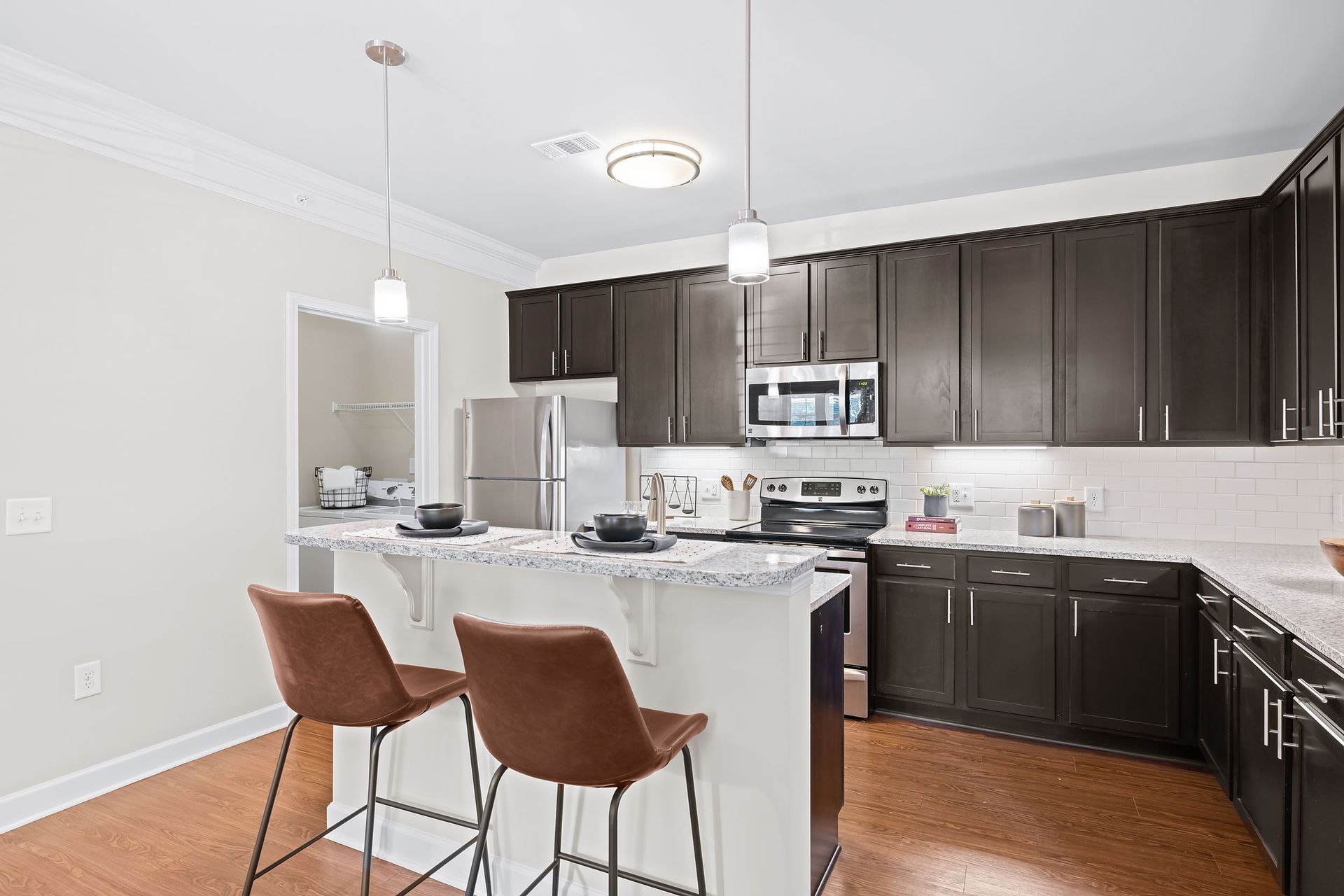 Imagine the experience our upgraded apartments in Mooresville, NC, will bring you. Browse through our photo gallery to get a glimpse of our 1, 2 & 3 bedroom apartments with features like detached garages and subway tile backsplash. Marquis at Morrison Plantation is a sight to see with spacious floor plans, polished finishes, and convenient community amenities.